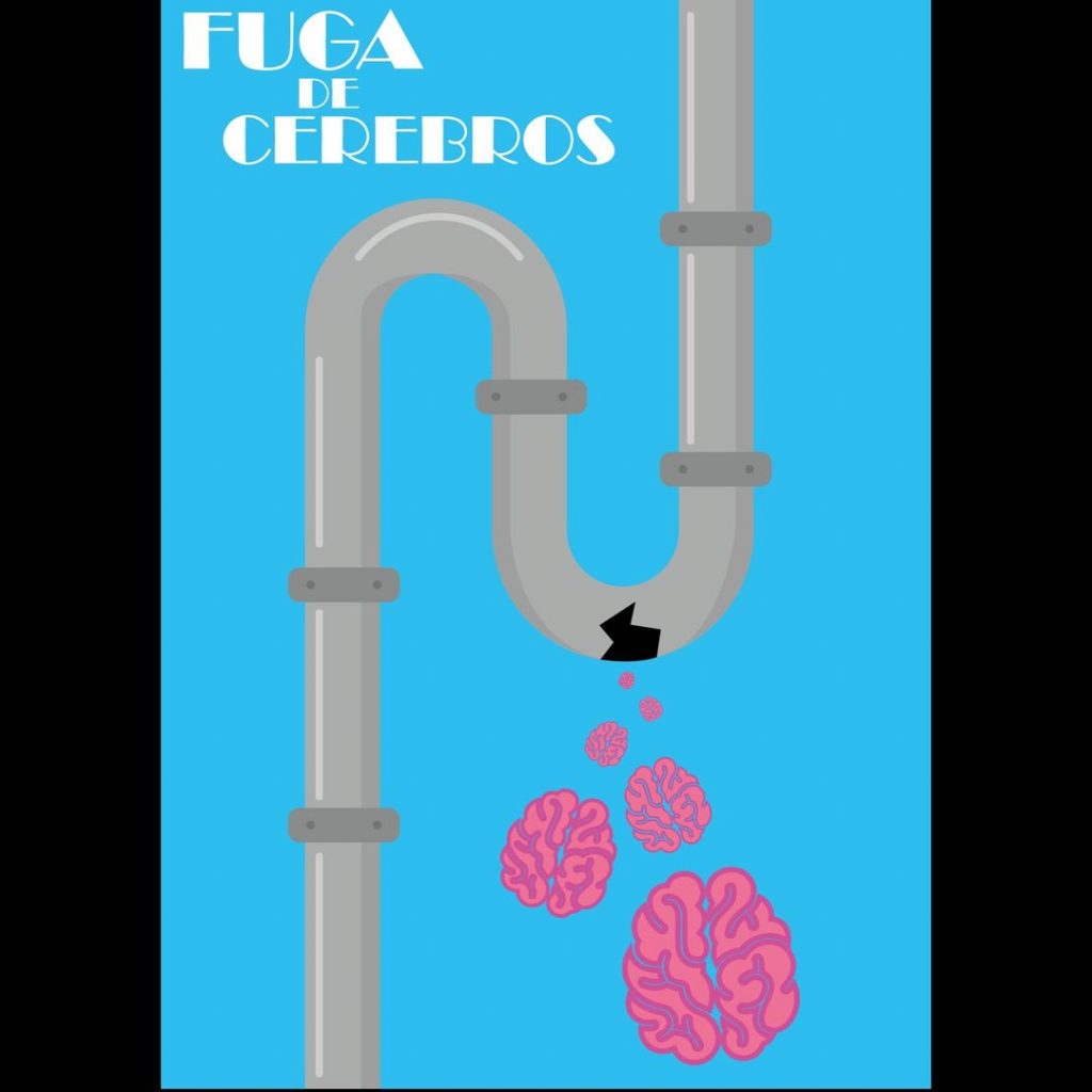El estilo gráfico es sencillo y efectivo, capturando de manera creativa la idea de pérdida de talento intelectual.